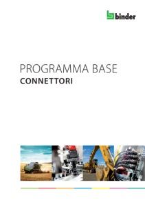 3 Ulteriori modelli e informazioni sul sito www.binder-connector.de Gamma serie Pagina Grado di protezione Tensione Corrente Numero poli Connettori subminiatura Pagina 5–26 Snap-in IP40 719 · 709 5 IP40 60 V 3 A 3–5 Snap-in IP67 620 7 IP67 125 V 1–3 A 3–8 Baionetta 710 11 IP40 125 V 1 A 2–8 Micro push-pull 420 13 IP67 125 V 1 A 3–5 Push-pull 430 15 IP67/IP40 125 V 1–4 A 3–8 M9 IP40 711 17 IP40 125 V 1–4 A 2–8 M9 IP67 712 · 702 19 IP67 125 V 1–4 A 2–8 Connettori miniatura Pagina 27–58 Snap-in 720 27 IP67 60/250 V 2–7 A 3–12 Baionetta 678 31 IP40 60/250 V 1–7 A 2–24 Baionetta NCC 770 35 IP67 175 V 2 A 8 Push-pull 440 37 IP67 60/250 V 1–7 A 3–19 M16 IP40 581 · 680 · 682 41 IP40 60/250 V 1–7 A 2–24 M16 IP67 423 · 723 · 425 49 IP67 60/250 V 1–7 A 2–24 Connettori Power Pagina 59–78 M23 623 59 IP67 60/250 V 7,5–16 A 6–19 RD24 692 · 693 65 IP67 250/400 V 10–16 A 3–6+PE Baionetta HEC 696 73 IP68/IP69K 60/400 V 3–25 A 8 (4 + 3+PE) RD30 694 77 IP65 60/400 V 3–20 A 4+PE–24 Connettori RAL 9002 Pagina 79–84 Snap-in IP67 620 79 IP67 125 V 1–3 A 3–8 Snap-in 720 81 IP67 60/250 V 2–7 A 3–12 Baionetta NCC 770 83 IP67 175 V 2 A 8 Tecnica di automazione - sensori e attuatori Pagina 85–136 M5 707 85 IP67 125 V 1 A 3–4 M8 768 · 718 89 IP65/IP67 30/60 V 1,5 A –4 A 3–8 M12-A 713 · 763 101 IP67/68/69K 30/250 V 2–4 A 3–12 Accessori per M12 M12 127 Cavi di collegamento 765 131 IP65–68 30/250 V 4 A 3–5 Tecnica di automazione - distributori · interfaccia AS Pagina 137–144 Distributori · Interfaccia AS 772 · 775 137 IP67 10/30 V 4 A — Tecnica di automazione - trasferimento dati e alimentazione di tensione Pagina 145–182 M12-B 715 · 766 145 IP67/68 125/250 V 4 A 4–5 M12-D · M12-X 825 · 876 157 IP67 250 V 4 A 4 M12-S 814 167 IP67 630 V 12 A 3+PE M12-T 813 171 IP67 60 V 12 A 4 7/8‘‘ 820 · 870 177 IP67 300 V 8–12 A 2–4+PE Tecnica di automazione - connettori per elettrovalvola Pagina 183–196 Modello A 210 183 IP65/67 24/250 V 2–10 A 2–3+PE Modello B 225 · 220 188 IP65/67 24/250 V 2–10 A 2+PE Modello C 235 · 230 193 IP65/67 24/250 V 2–10 A 2–3+PE Registro Pagina 197–206 Registro numeri d’ordinazione 197 Lista dei riferimenti incrociata 205 Informazioni tecniche Pagina 207–210 Spiegazioni 207 Contenuto