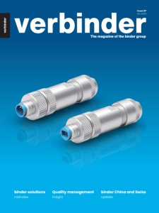 Michael Schroers: That’s how I see it, too. The agile project management approach implemented at binder solutions means that project managers can respond to new factors and changes quickly and constructively. We coordinate our activities on a regular basis, as nothing is more constant than change during a project. The teams can work more productively and achieve interim results faster than with rigid project structures. Nevertheless, when working with our customers, the most important thing is trust, which we build together through open and transparent communication. How do projects typically get started? Can you give any examples relating to products from binder solutions? Matthias Simbürger: We usually start with a concept study, and we discuss with the customer how to set about solving the problem as effectively as possible. At the outset, it’s about collating the key general data and creating an initial concept on that basis. Due to the number of projects and customers that we handle, we often come up against the same or similar challenges time after time, so we can draw upon our wealth of experience. In certain sectors, however, we encounter requirements and concepts that are new territory for us. One example was the DC Power Hybrid Connector, and other hybrid solutions, as an interface between the connector industry and new markets. Mr Schroers, in verbinder 40 in March 2017 you said that in the mediumtermbindersolutions could potentially generate 15–20% of our turnover at the binder headquarters. How close are you to that target? Michael Schroers: We’re at a high single-digit percentage already – a remarkable figure owing to sales growth at the binder headquarters since 2017. To put this in context, we started from scratch just ten years ago and completely rebuilt the business model with fantastic support from members of staff from across the binder group. Figures indicate that binder solutions will continue to grow in prominence. NEWS ‘During a project, nothing is more constant than change.’ Michael Schroers is responsible for sales and logistics at binder solutions 8