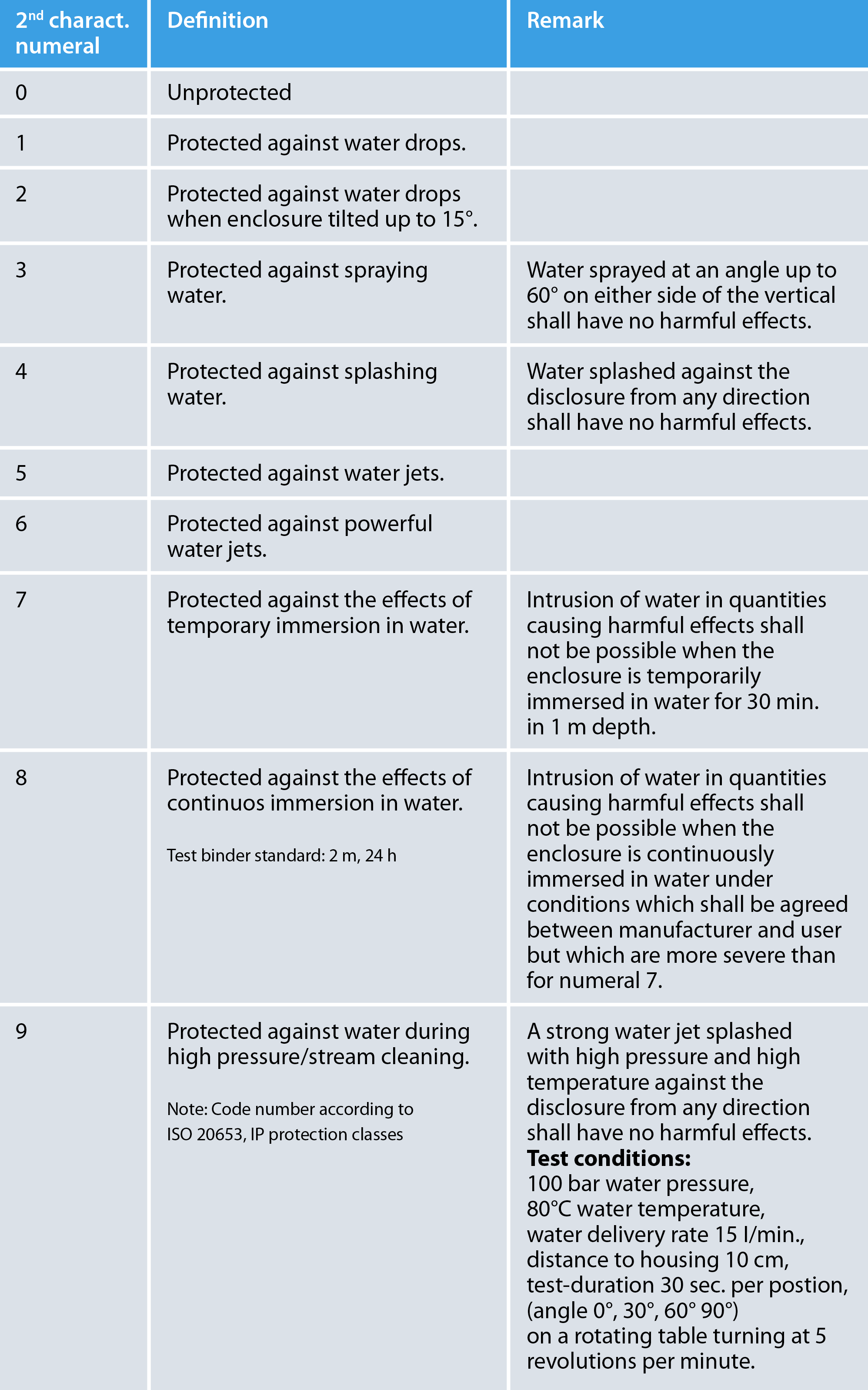 - Second digit (0–9K): Protection against liquids (e.g., water, cleaning agents).