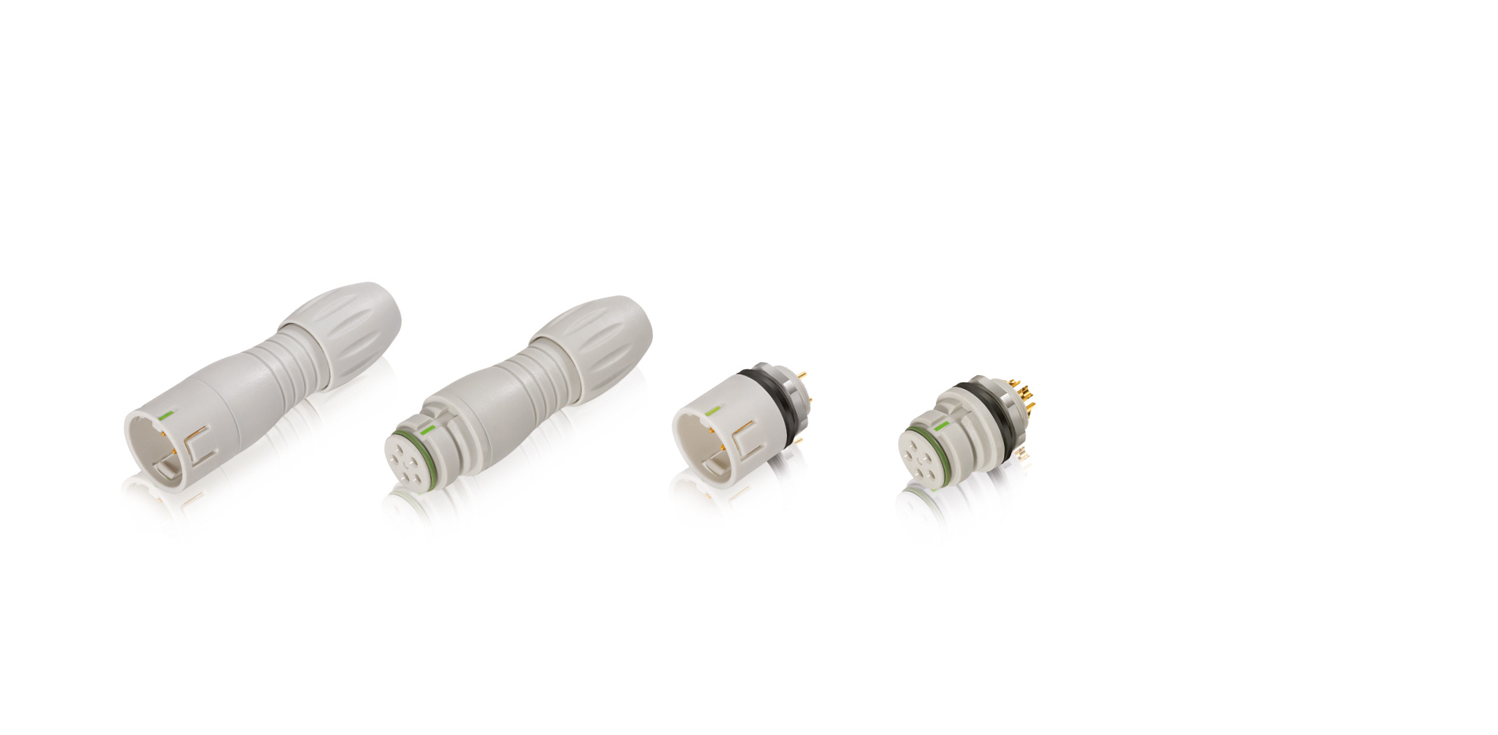 The Medical Grade 620 Series, which is IP67 when mated, includes snap-in connectors available in cable and panel mount versions. Cable and panel mount connectors are grey-white, and users can order 3, 4, 5 or 8 contacts with rated currents between 1 A and 3 A (depending on the number of contacts). Cable connectors have solder termination, panel mount connectors have solder or dip solder termination. More than 500 mating cycles are possible.