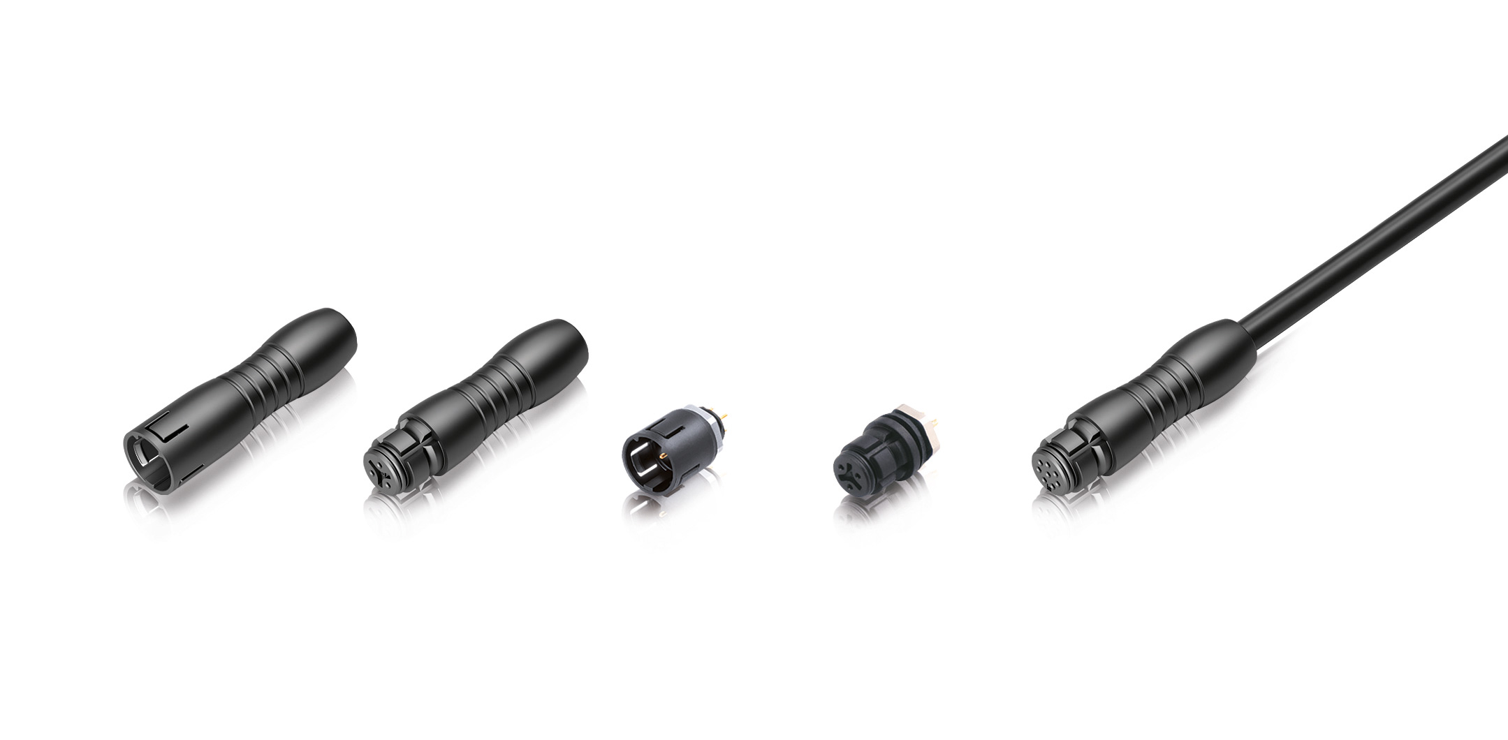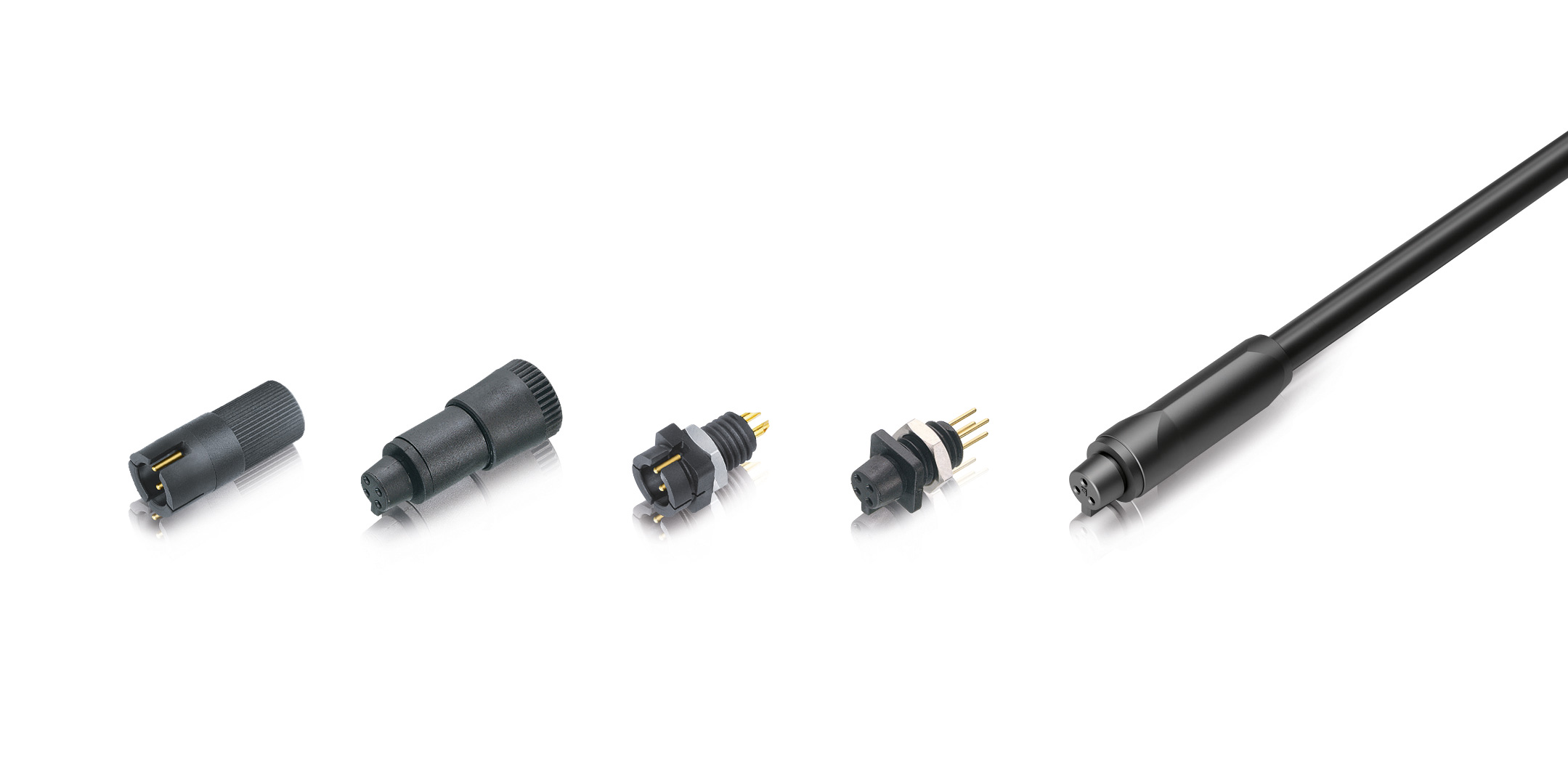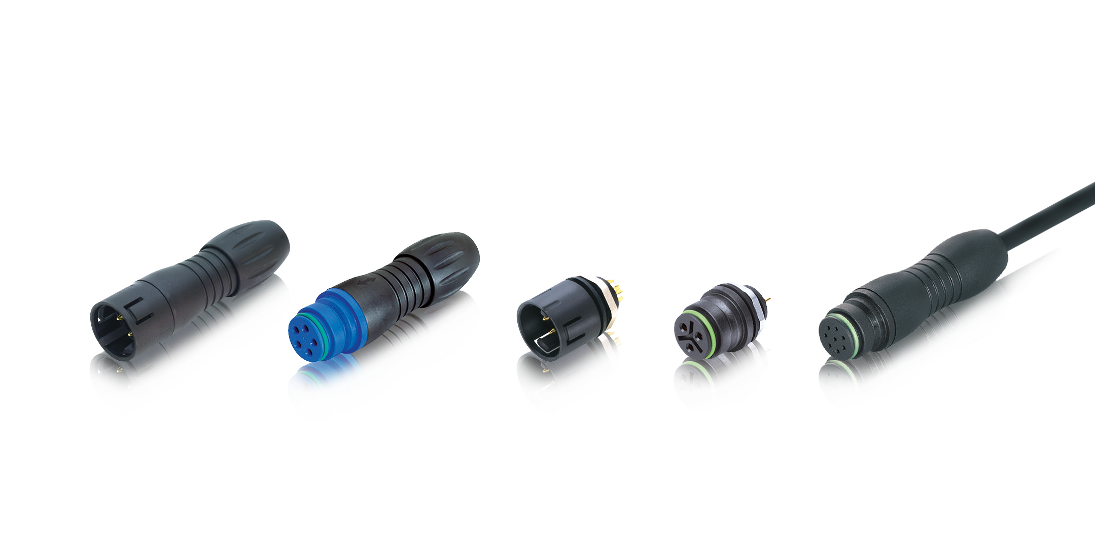 These snap-lock connectors meet the requirements of protection class IP67 when mated and are suitable for applications requiring protection against dust and liquids. They are available as cable connectors or with moulded cables but can also be designed as panel mount connectors. The cable connectors as well as the panel mount connectors are available in black, red, blue or green. Users can choose between 3-, 4-, 5- or 8-pole versions, which are designed for a rated current between 1A and 3A at 63 - 125V. Most models are available with solder or dip solder termination. More than 500 mating cycles are possible.