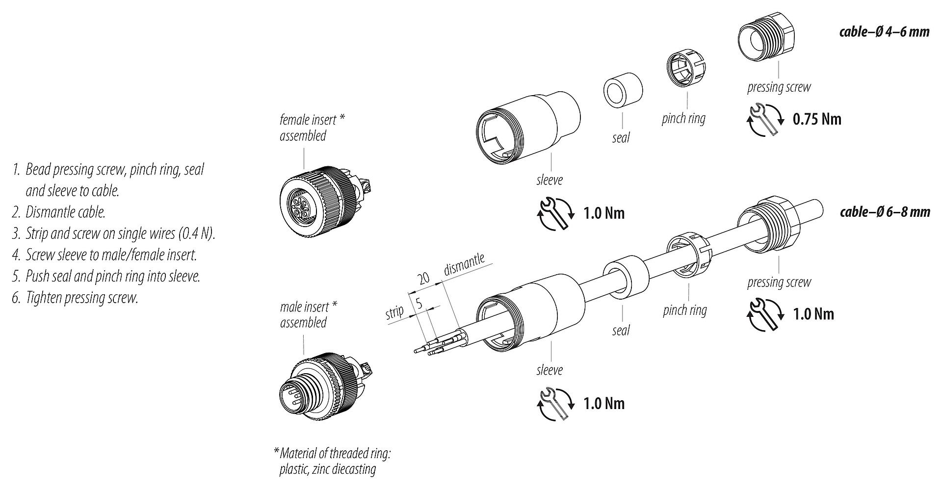 - To lock the cable connector with the device connector, the threaded ring is tightened "hand-tight" (approx. 60 cNm).