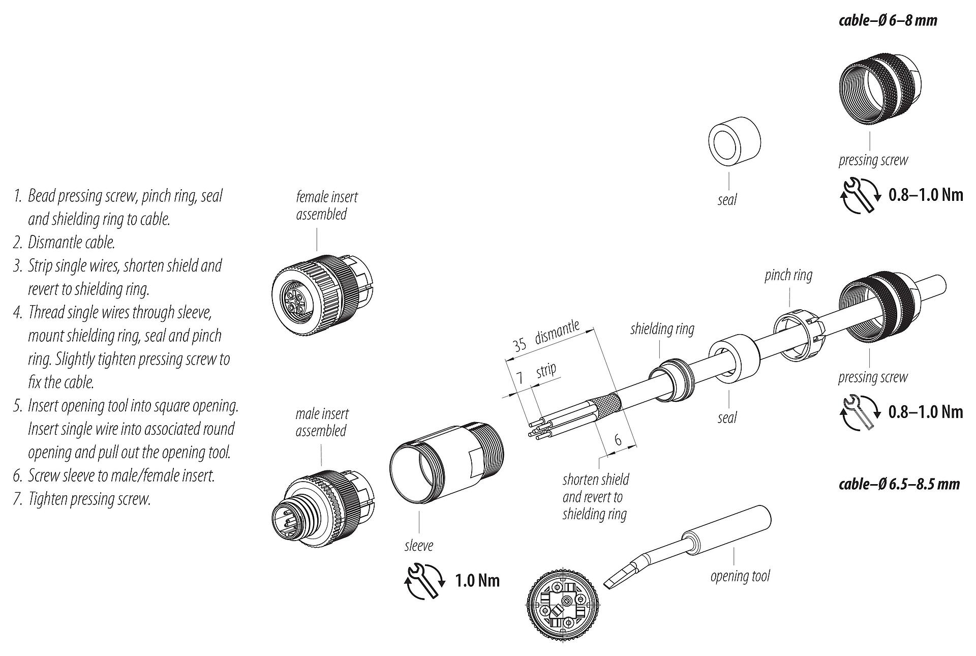 - To lock the cable connector with the device connector, the threaded ring is tightened "hand-tight" (approx. 60 cNm).
