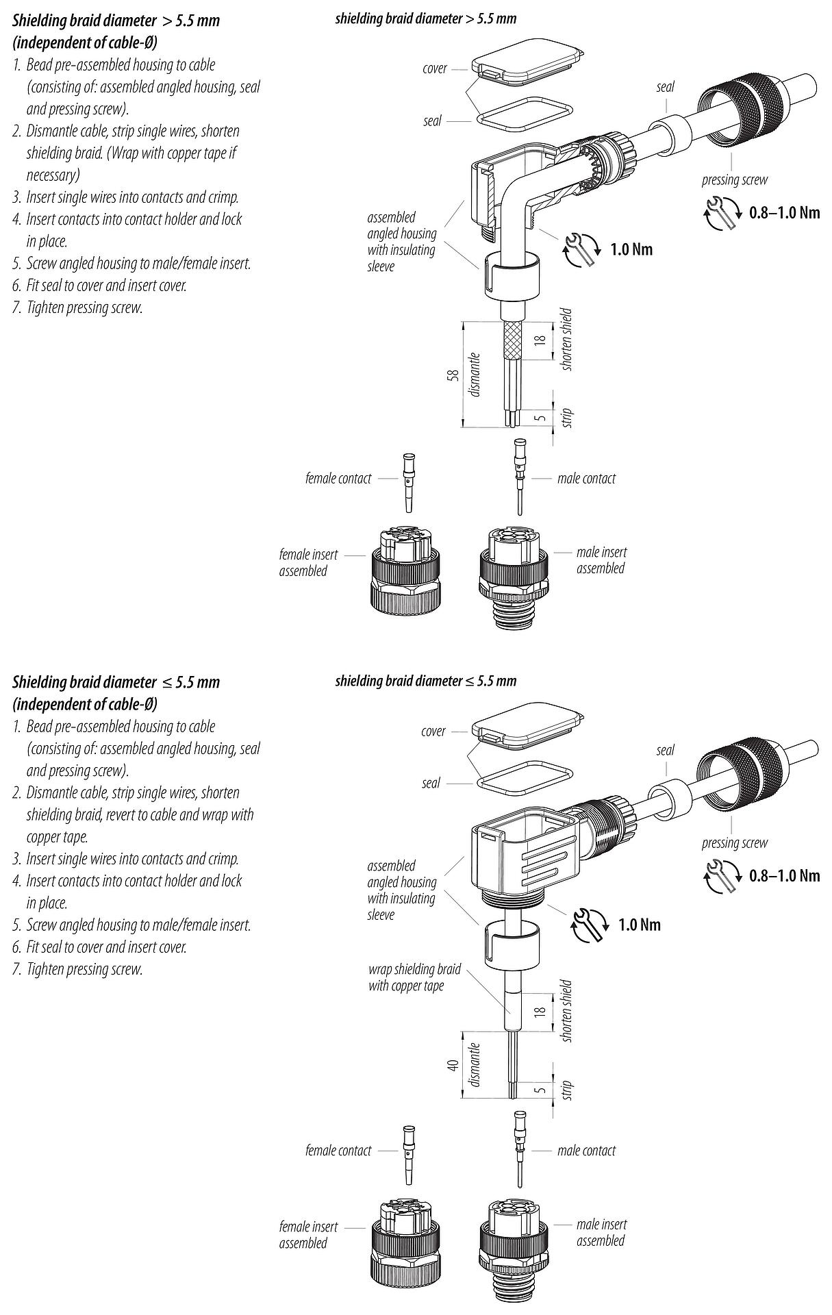 - To lock the cable connector with the device connector, the threaded ring is tightened "hand-tight" (approx. 60 cNm).