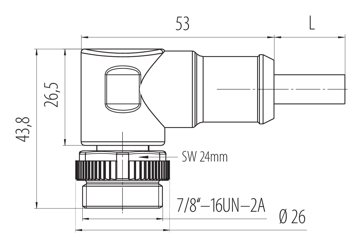 This male angled connector with screw locking and a pin count of 5 is according to its protection class IP68 Dustproof and complete protection against contact. Protection against permanent submersion. Unless otherwise specified, protection up to 1 meter water depth. It can be used in areas with a pollution degree of 3. In places where contamination can occur that is conductive or can become conductive through condensation. With temperatures ranges of -25 °C/80 °C is this unshielded 7/8" male angled panel mount connector designed for both severe cold and severe heat. und has the UL approval. Due to the qualified rated voltage of 300 V (600 V UL) and the rated current of 9,0 A it is perfectly tuned for its field of application.