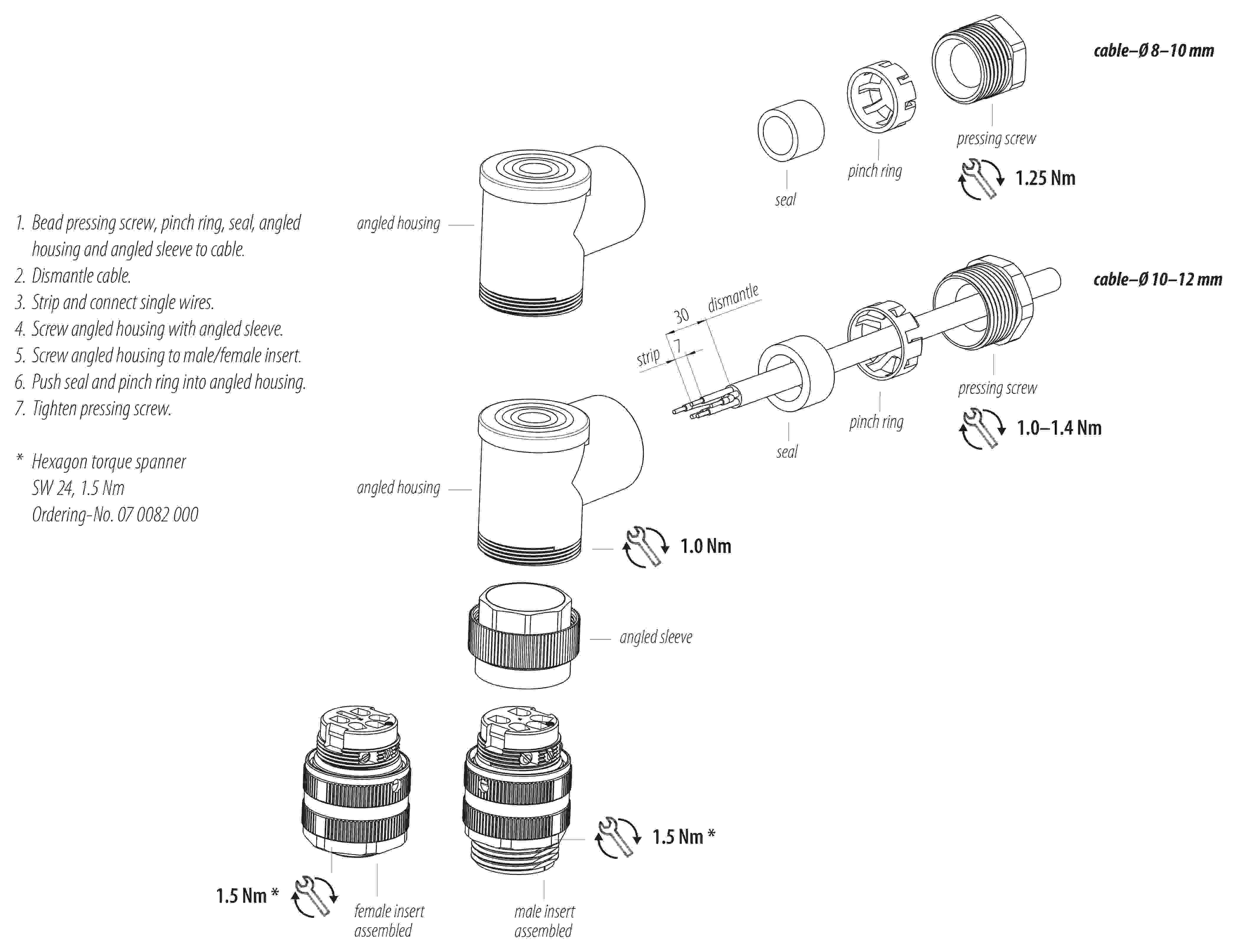 - To lock the cable connector to the device connector, we recommend tightening the threaded ring to 1.5 Nm. A suitable torque wrench is available as an accessory (order no. 07 0082 000).