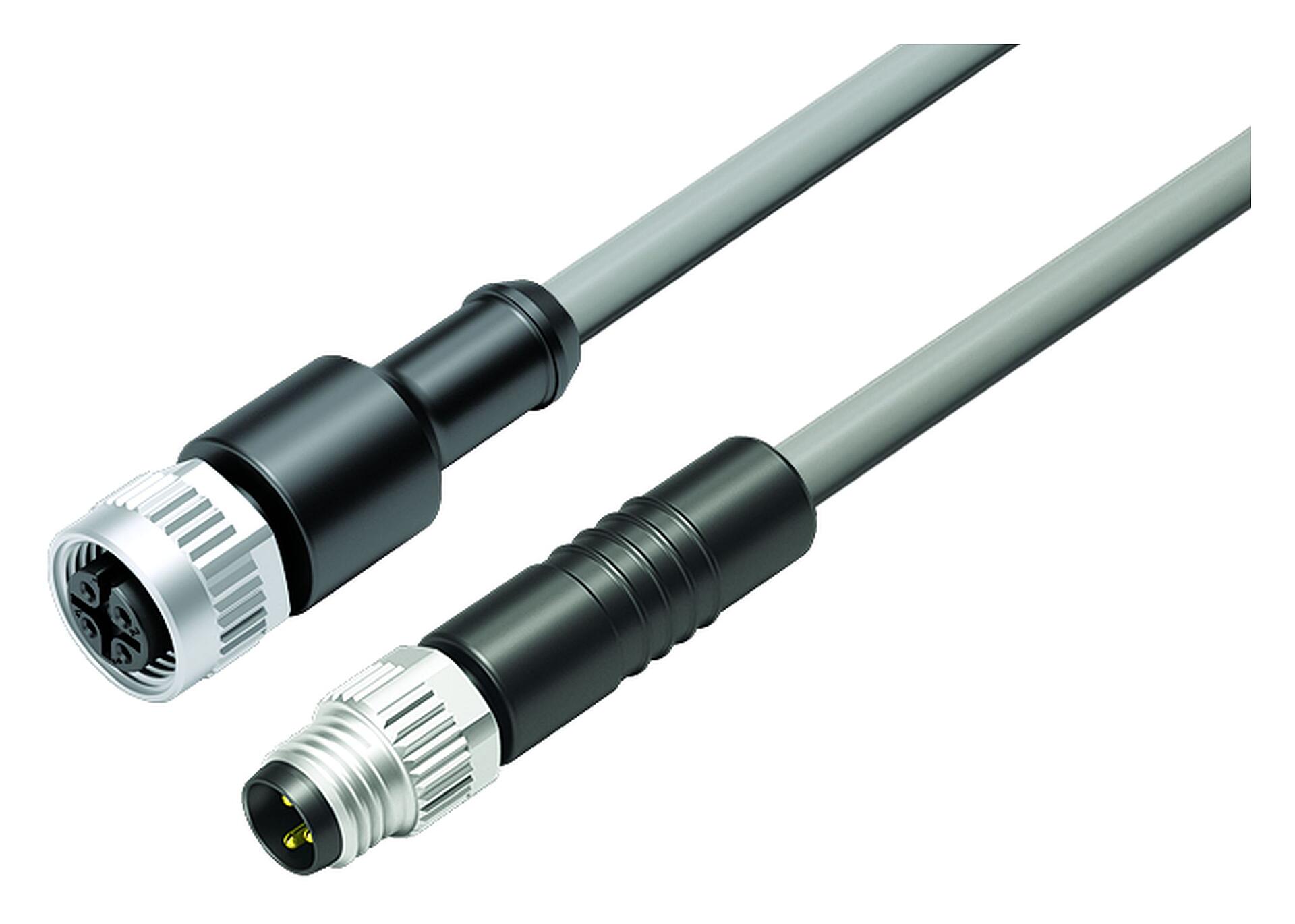 M12/M8 Male cable connector - female cable connector, Contacts: 3, unshielded, moulded on the cable, IP67/IP69K, UL 2238, PVC, grey, 3 x 0.34 mm², 2 m