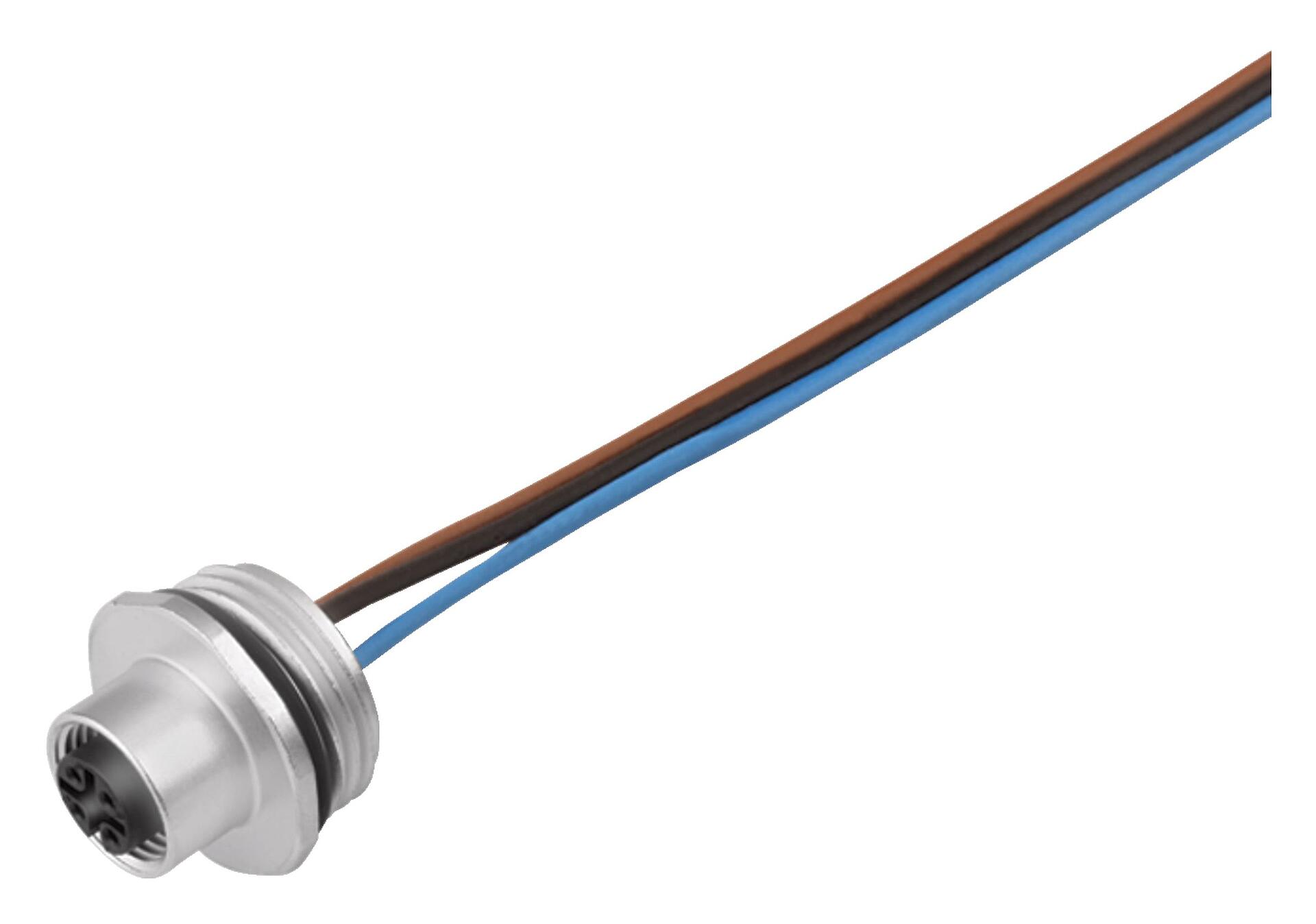 M12 Female panel mount connector, Contacts: 4, unshielded, single wires, IP67, UL 2238, M20x1.5, Front mounting, potted