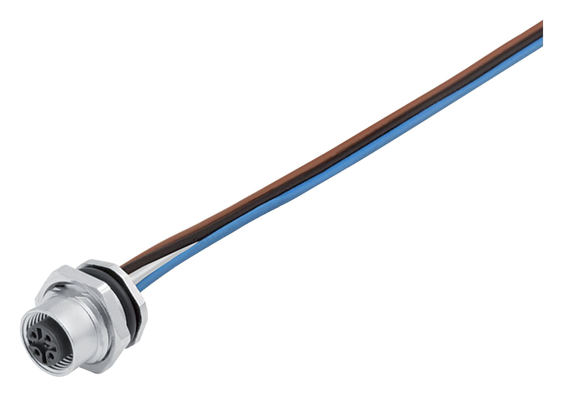 M12 Female panel mount connector, Contacts: 12, unshielded, single wires, IP68/IP69K, UL 2238, PG 9, Rear mounting, stainless steel, potted