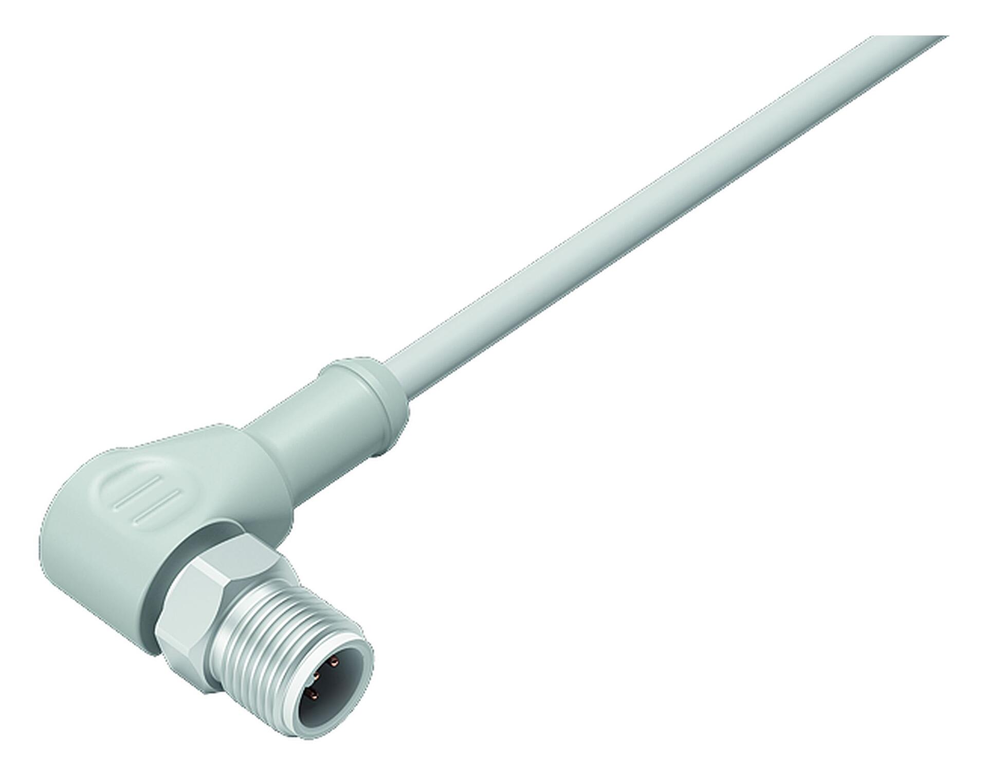 M12 Male angled connector, Contacts: 3, unshielded, moulded on the cable, IP67/IP69K, UL 2238, Ecolab, PVC, grey, 3 x 0.34 mm², stainless steel, 5 m