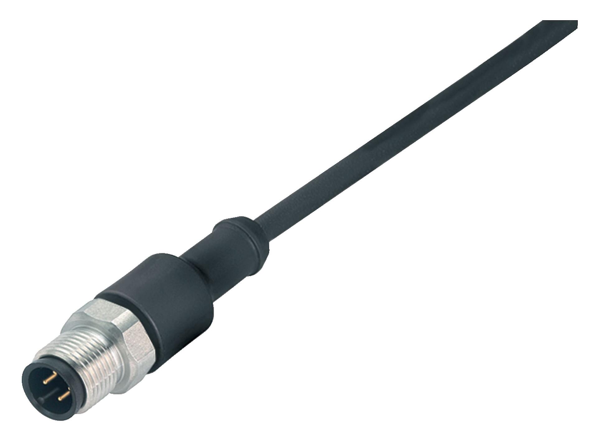M12 Male cable connector, Contacts: 8, unshielded, moulded on the cable, IP67/IP69K, UL 2238, PUR, black, 8 x 0.25 mm², stainless steel, 10 m