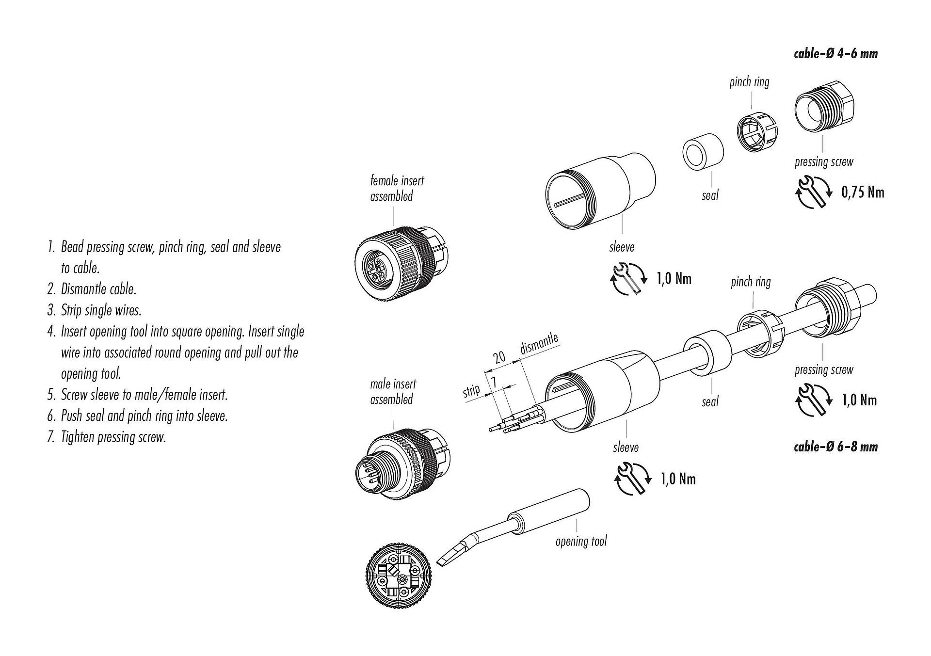 - To lock the cable connector with the device connector, the threaded ring is tightened "hand-tight" (approx. 60 cNm).
