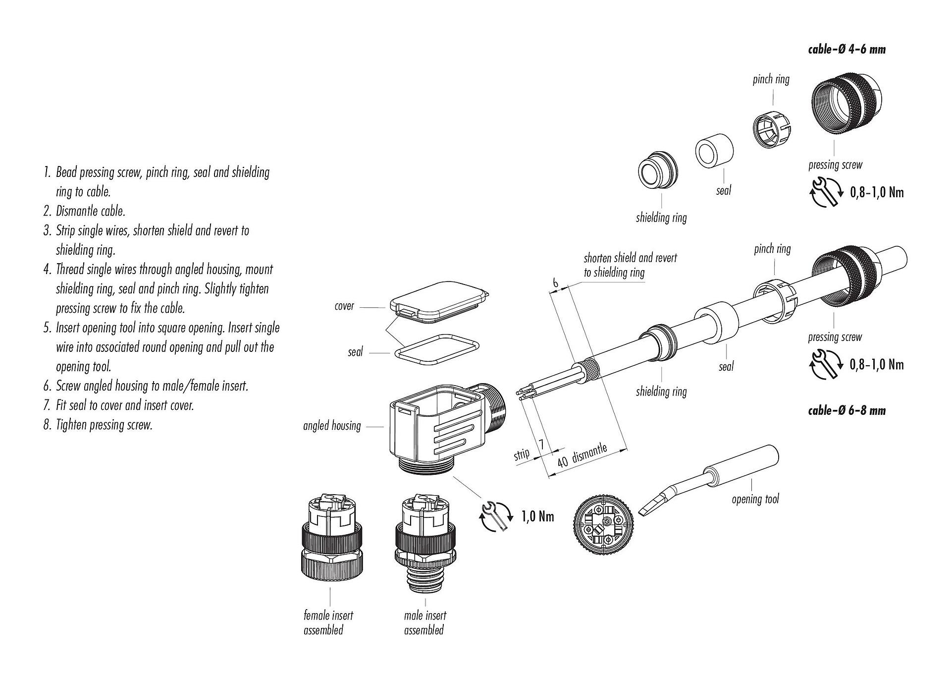 - To lock the cable connector with the device connector, the threaded ring is tightened "hand-tight" (approx. 60 cNm).