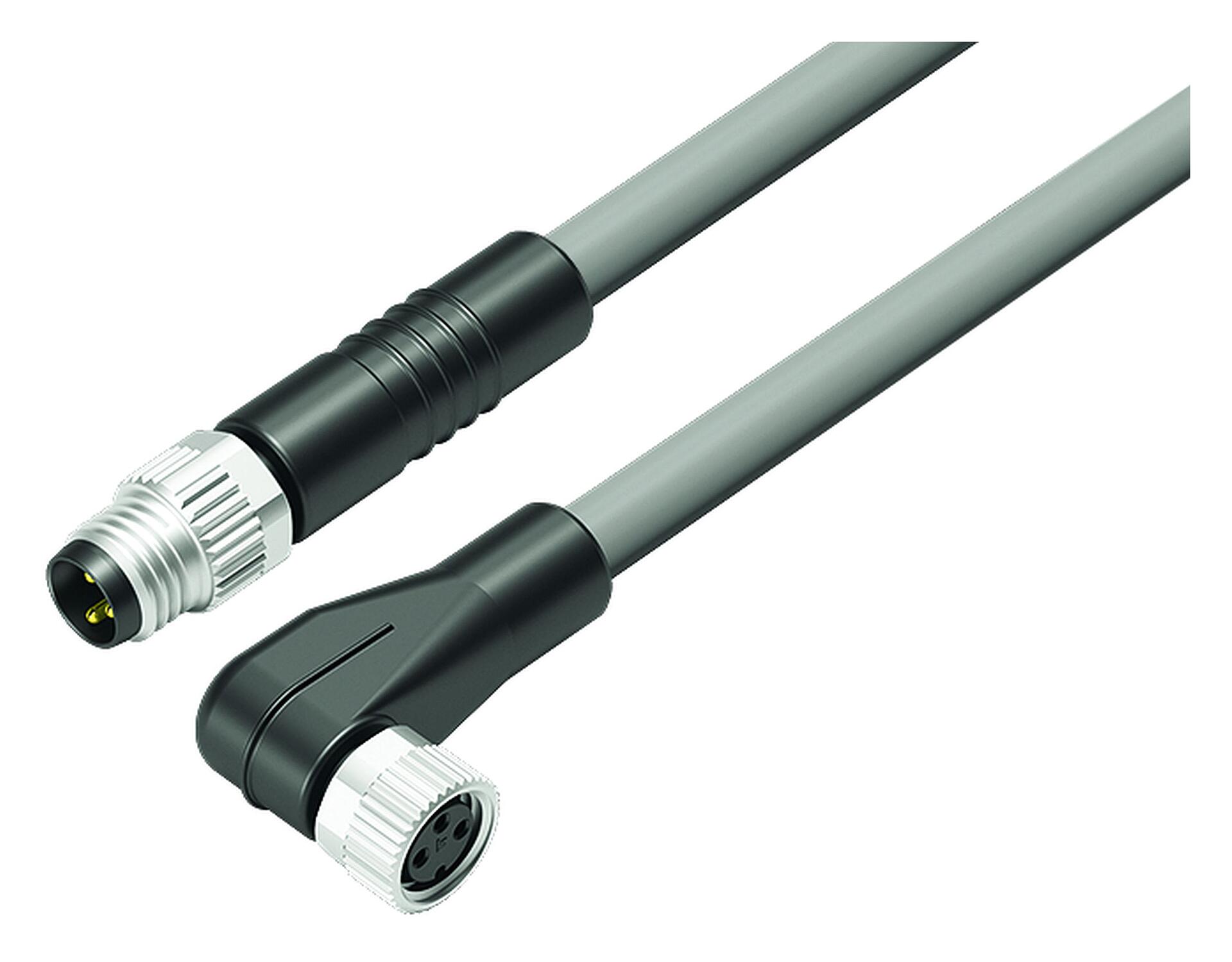 M8 Connecting cable male cable connector - female angled connector, Contacts: 3, unshielded, moulded on the cable, IP67/IP69K, UL 2238, PVC, grey, 3 x 0.34 mm², 3 m
