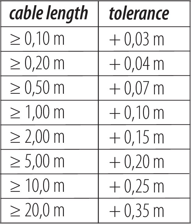 Cable length | 2 m (Standard 2 m and 5 m. Other lengths are available on request.) |