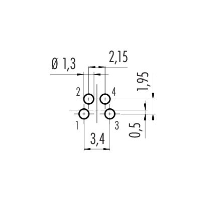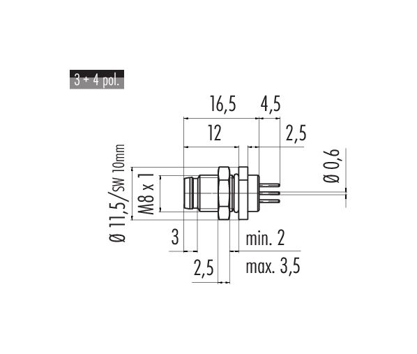 M8 Male panel mount connector, Contacts: 4, unshielded, THT, IP67, UL 2238, M8x1.0, Rear mounting