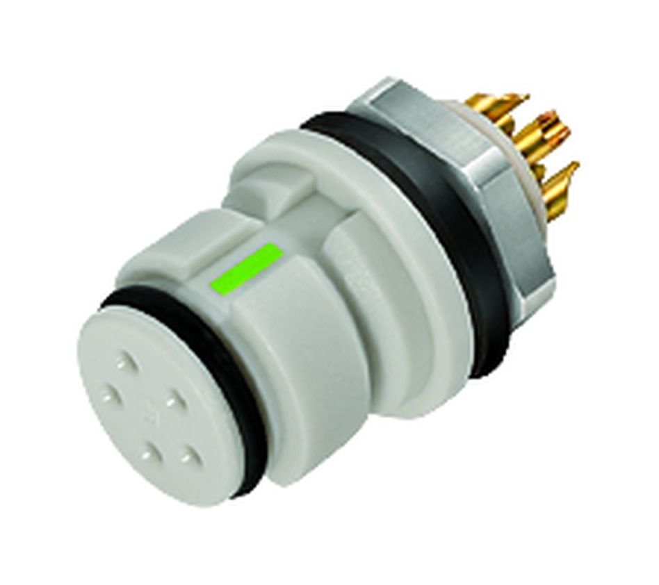 Snap-In Female panel mount connector, Contacts: 5, unshielded, solder, IP67, M8x0,75, Front mounting