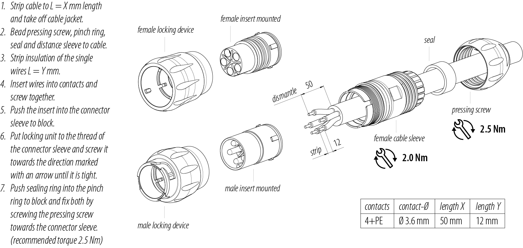 - Connectors which are used in circuits with voltages dangerous to the touch may only be installed and used by, or under the supervision of, persons with electrical engineering training, taking into account the applicable regulations and standards.