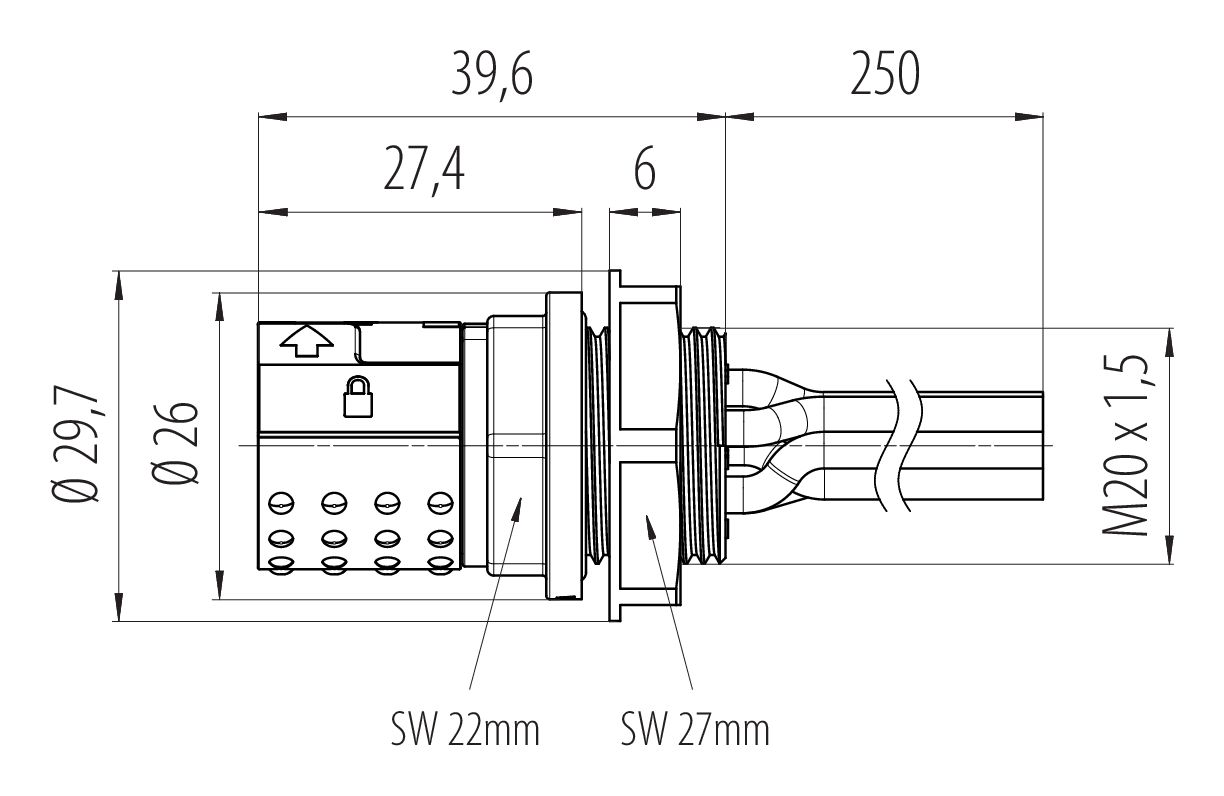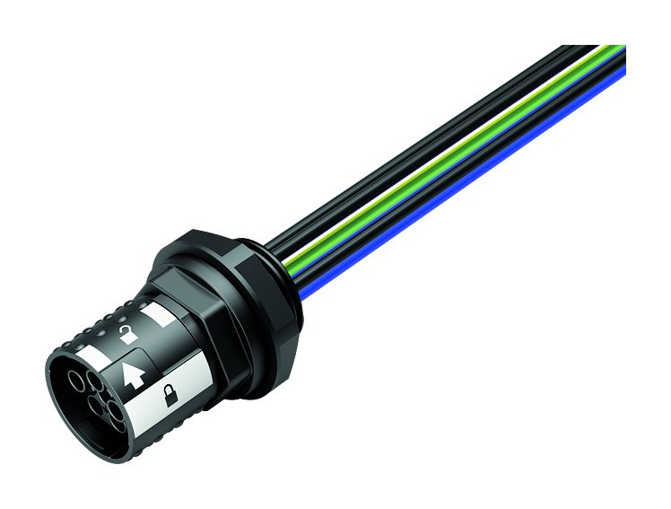 Bayonet Female panel mount connector, Contacts: 6, unshielded, single wires, IP66/IP67, UL 2237, M20x1.5, Front mounting