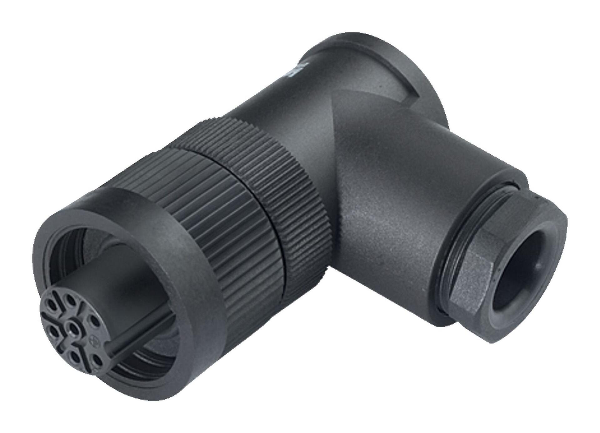 RD24 Female angled connector, Contacts: 6+PE, 10.0-12.0 mm, unshielded, solder, IP67, UL, ESTI+, VDE, PG 13.5
