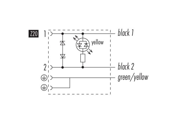 Conector de válvula solenoide hembra, Número de contactos: 2+2PE, sin blindaje, moldeado en el cable, IP67, PUR, negro, Circuito Z20, con LED PNP, 5 m