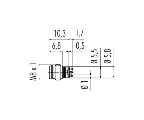M8 Enchufe integrado, Número de contactos: 4, sin blindaje, THT, IP67, Montaje frontal