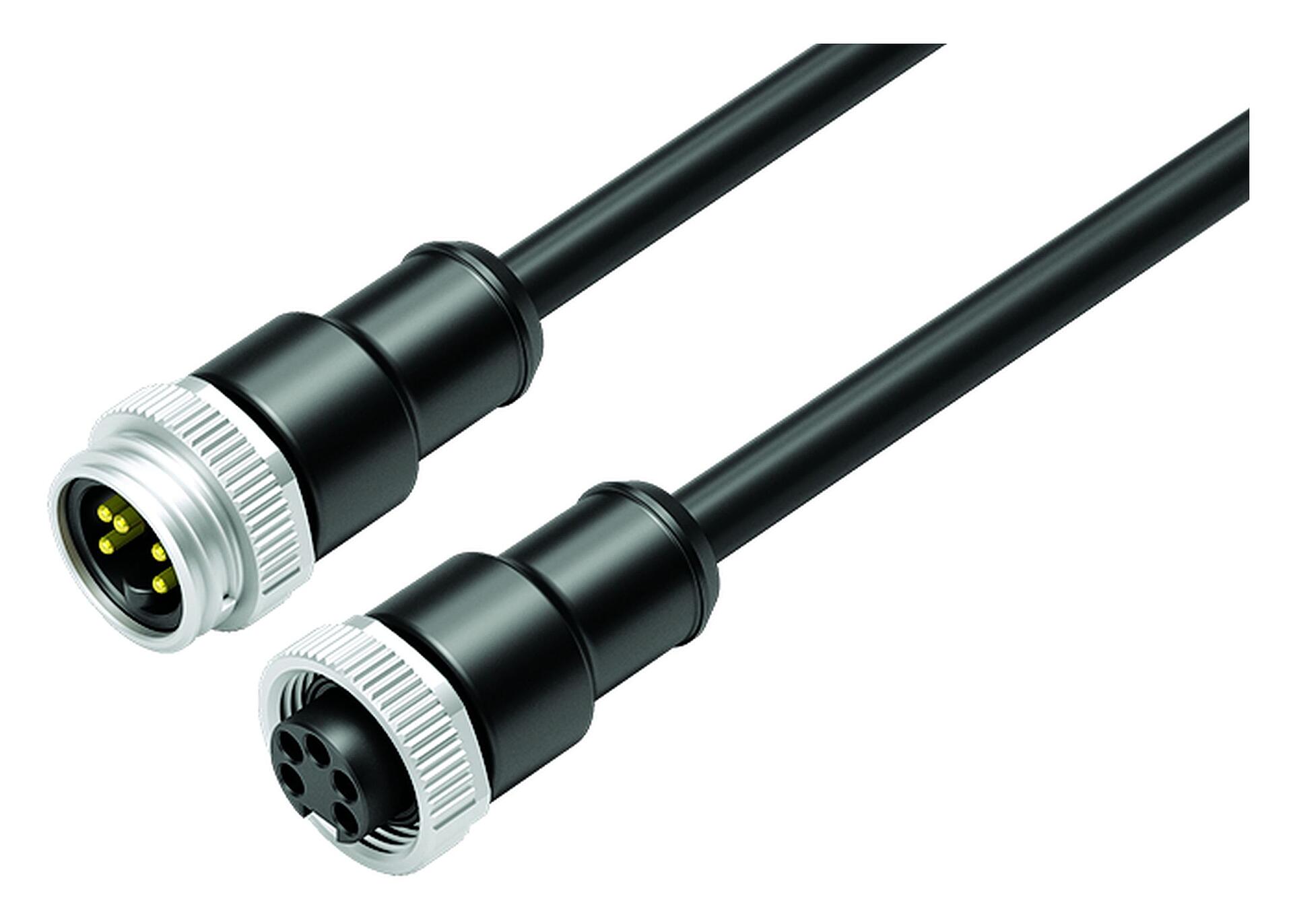 7/8" Cable de conexión conector de cable macho - conector de cable hembra, Número de contactos: 4+PE, sin blindaje, moldeado en el cable, IP68, UL 2238, PUR, negro, 5 x 1,50 mm², 2 m