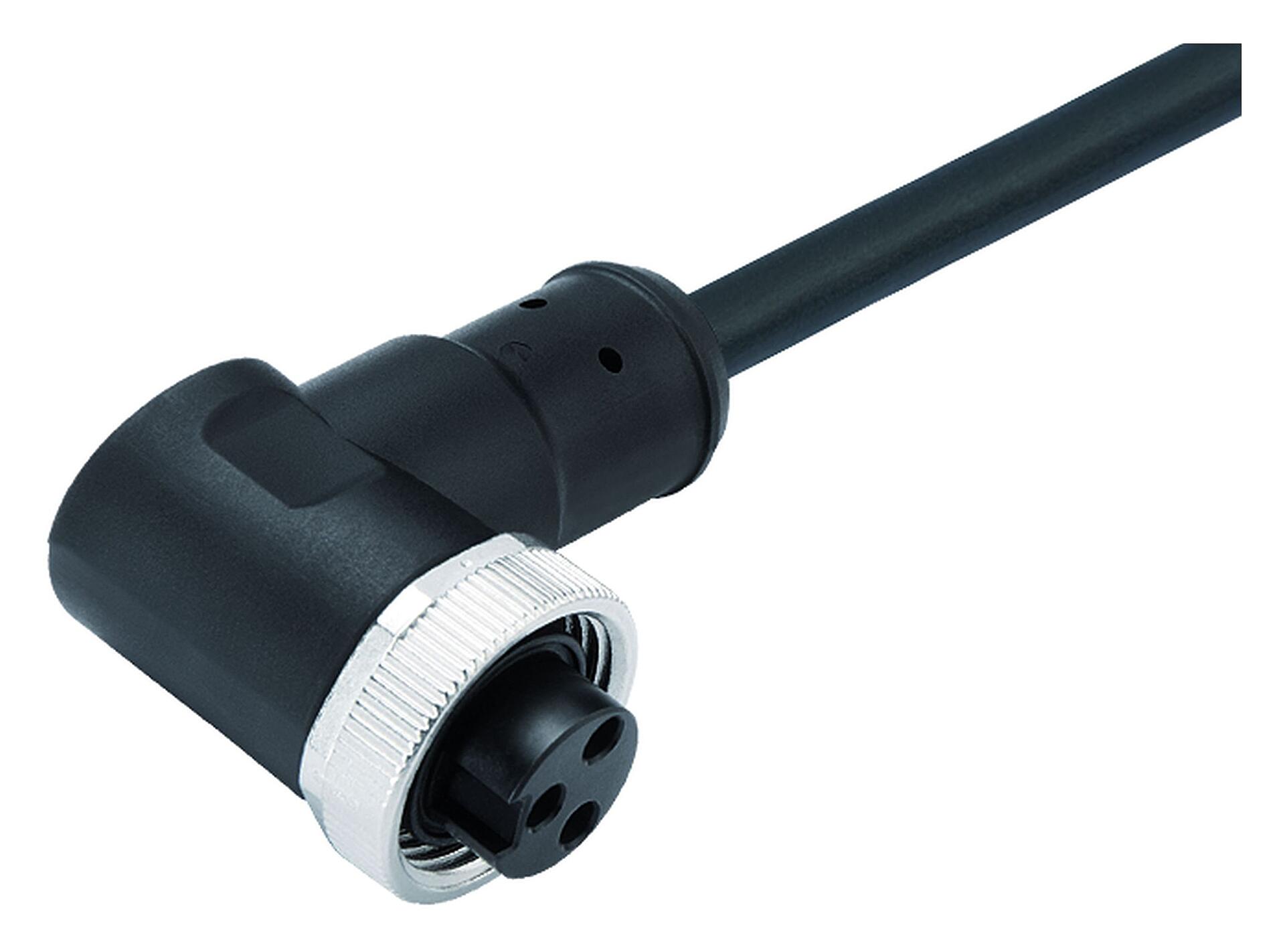 7/8" Conector hembra en ángulo, Número de contactos: 5, sin blindaje, moldeado en el cable, IP68, UL 2238, PUR, negro, 5 x 1,50 mm², 5 m