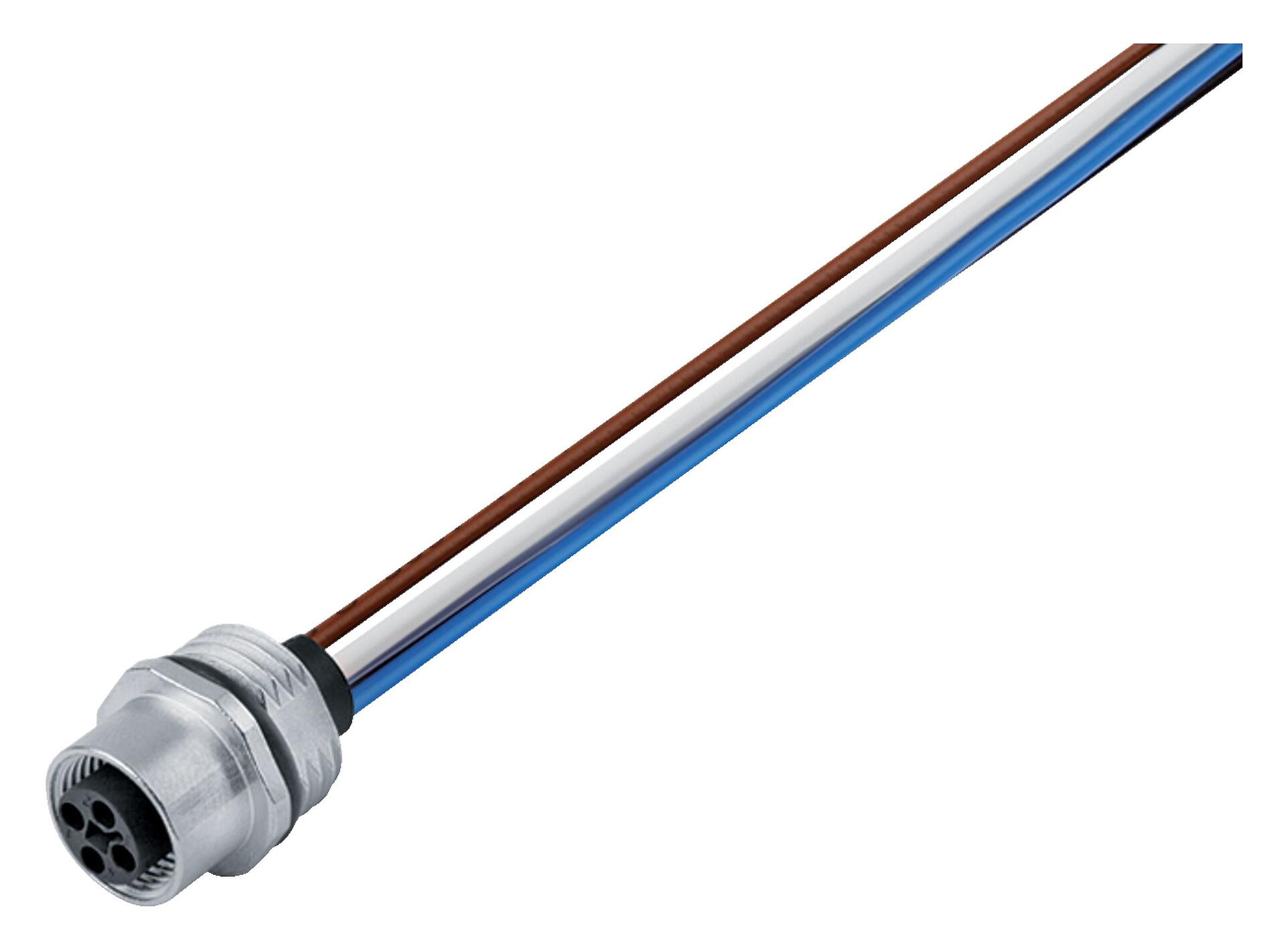 M12 Toma de brida, Número de contactos: 4, sin blindaje, hilos, IP68, UL 2238, M16x1,5, Montaje frontal, moldeado