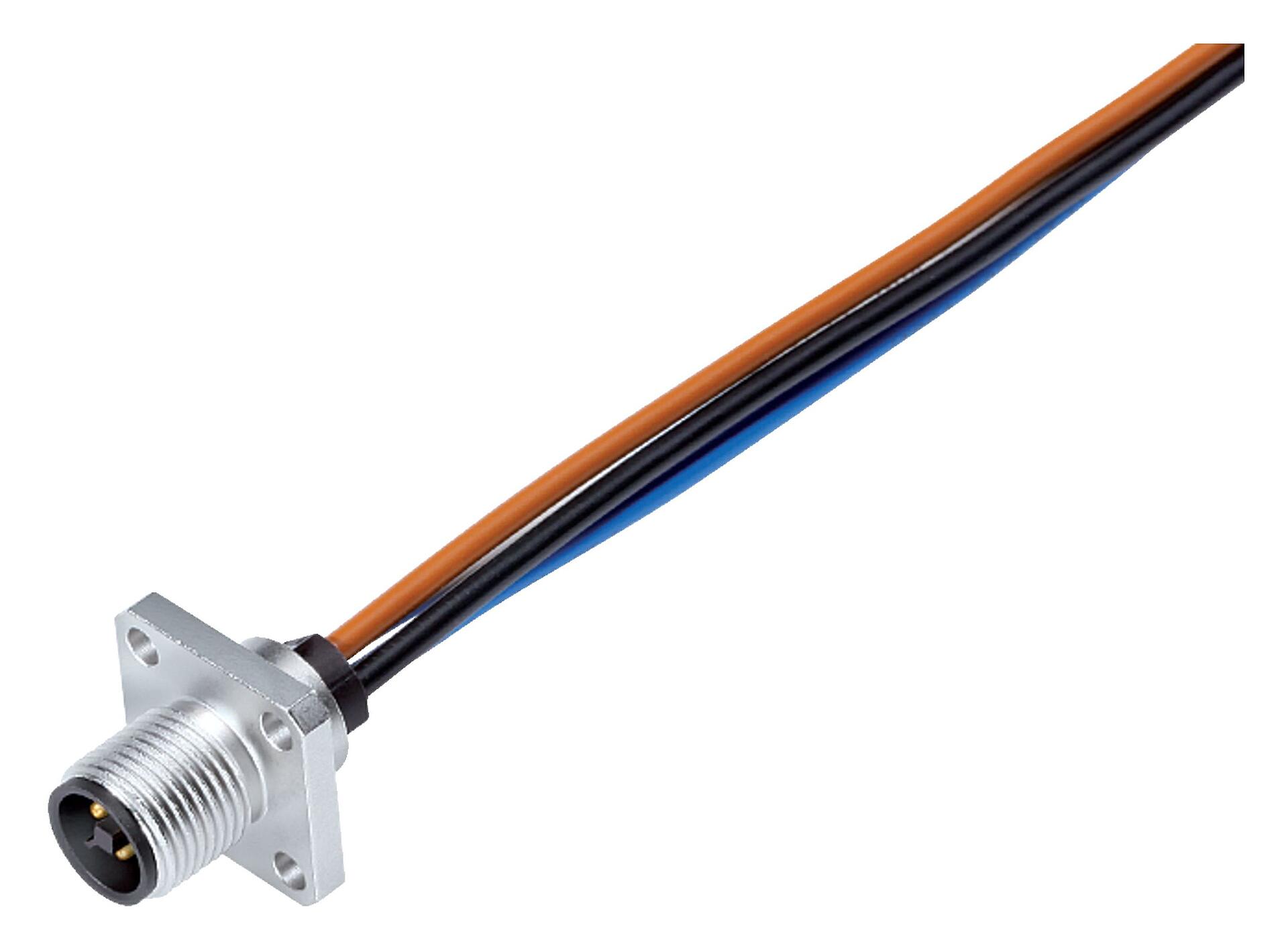 M12 Conector de montaje en panel macho cuadrado, Número de contactos: 4, sin blindaje, hilos, IP40, UL 2238, M3 (4x), Montaje frontal, moldeado
