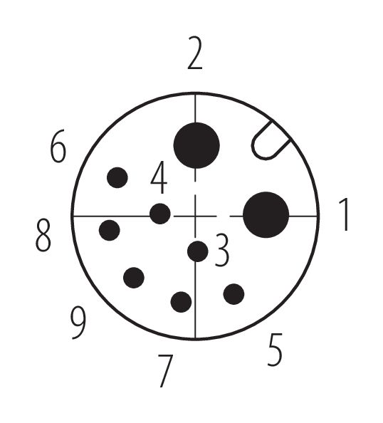 M12 Enchufe integrado, Número de contactos: 2+7, soldadura, IP67 enchufado y bloqueado, Montaje frontal