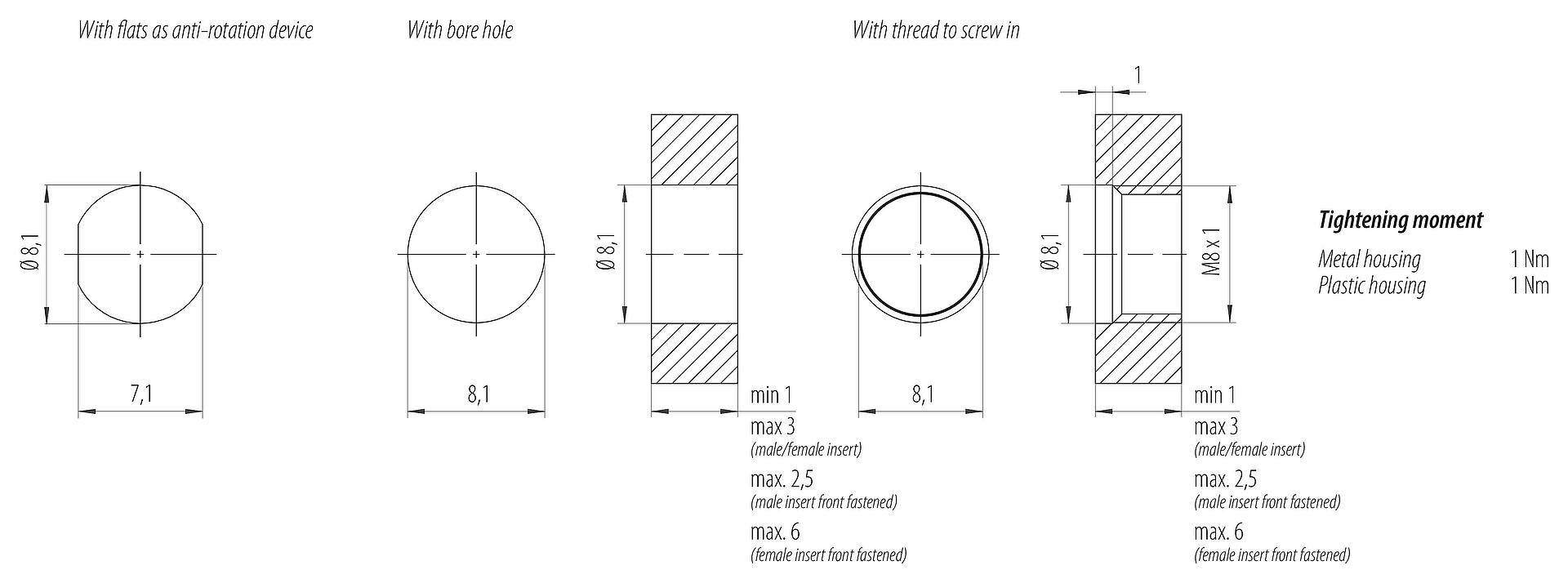- Para bloquear el conector del cable con el conector del dispositivo, el anillo roscado se aprieta "apretado con la mano"(aprox. 40 cNm).