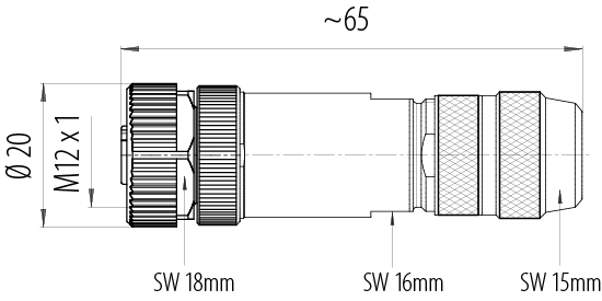 - Pour verrouiller le connecteur du câble avec le connecteur de l'appareil, la bague filetée est serrée "à la main" (environ 60 cNm).