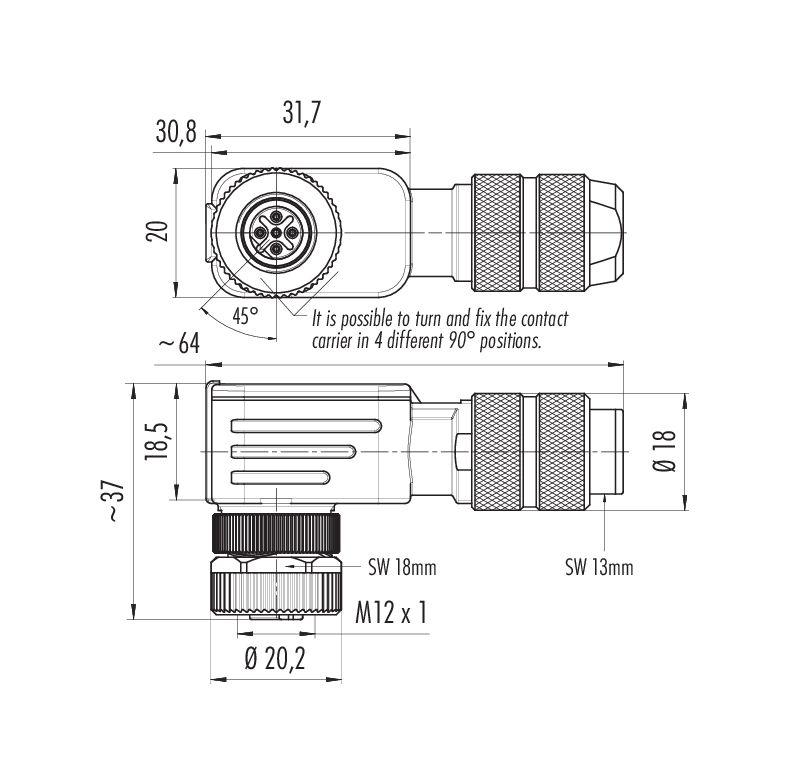 - Les connecteurs avec une protection de boîtier IP67 et IP68 ne sont pas adaptés à une utilisation sous l'eau. En cas d'utilisation à l'extérieur, les connecteurs doivent être protégés séparément contre la corrosion. Pour plus d'informations sur les degrés de protection IP, veuillez vous référer au centre de téléchargement "Informations techniques.