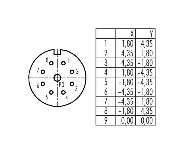 | Arrangement de contacts | sens antihoraire |