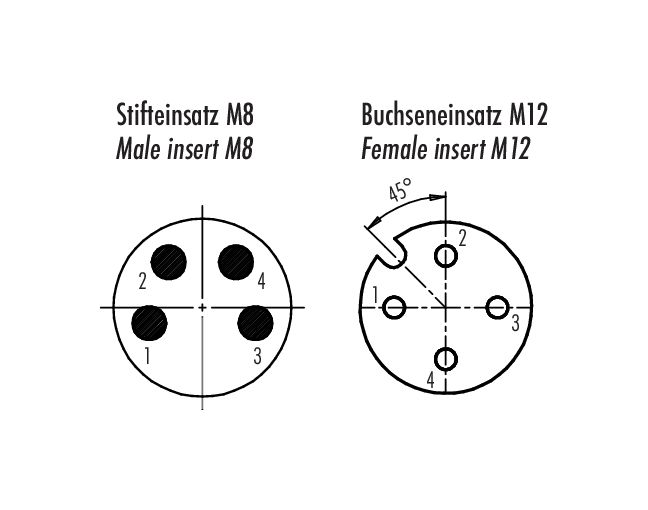 M12/M8 Adaptateur, Contacts: 4, non blindé, enfichable, IP67