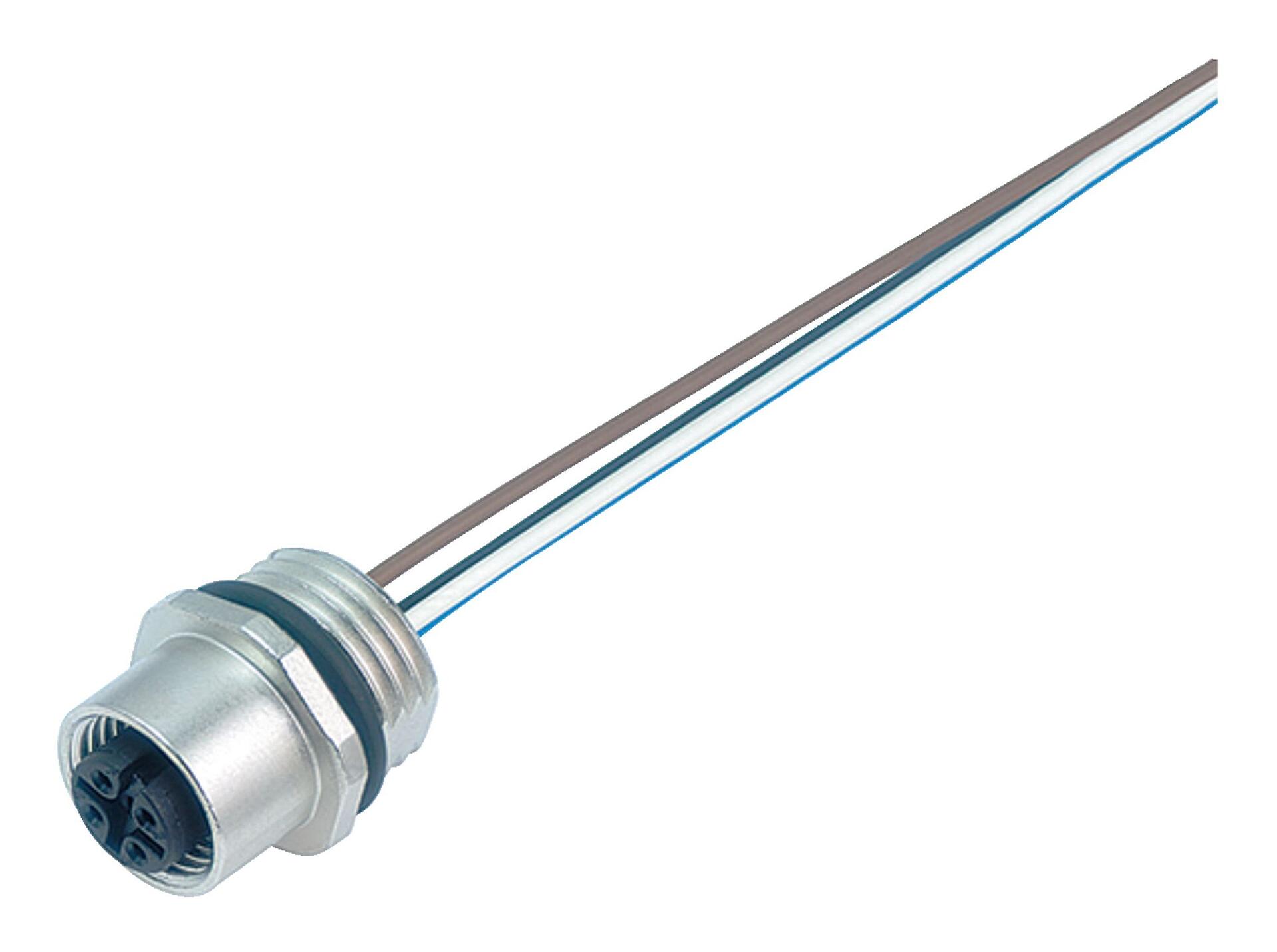 M12 Embase femelle, Contacts: 8, non blindé, fils, IP68, UL 2238, PG 9, Montage frontal, Acier inoxydable, coulé