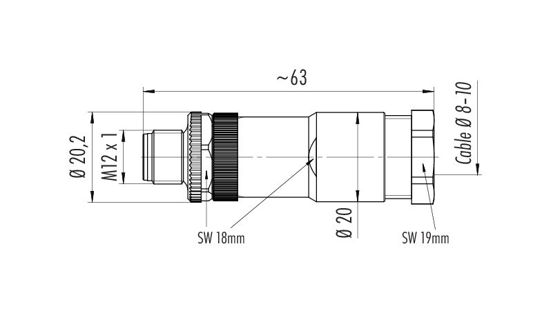 M12 Connecteur mâle, Contacts: 5, 8,0-10,0 mm, non blindé, pince à visser, IP67, UL 2238, VDE, pour l'alimentation électrique