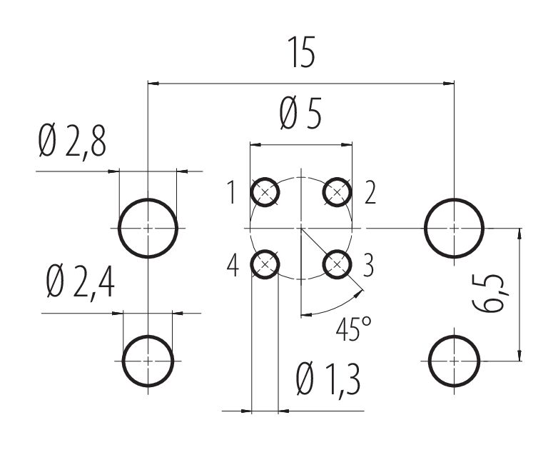 M12 Embase femelle, Contacts: 4, non blindé, THR, IP68, UL 2238, M12x1,0, Montage frontal, pour assemblage PCB, conception en deux parties
