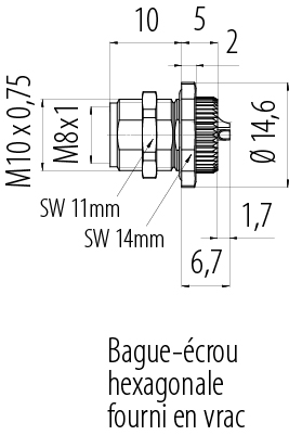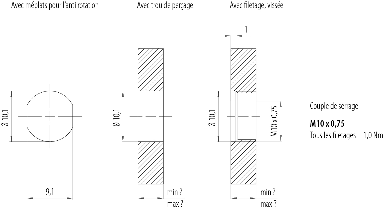 - Pour verrouiller le connecteur du câble avec le connecteur de l'appareil, la bague filetée est serrée "à la main" (environ 40 cNm). Une clé dynamométrique pour SW9 est disponible en tant qu'accessoire (référence 07 0085 000).